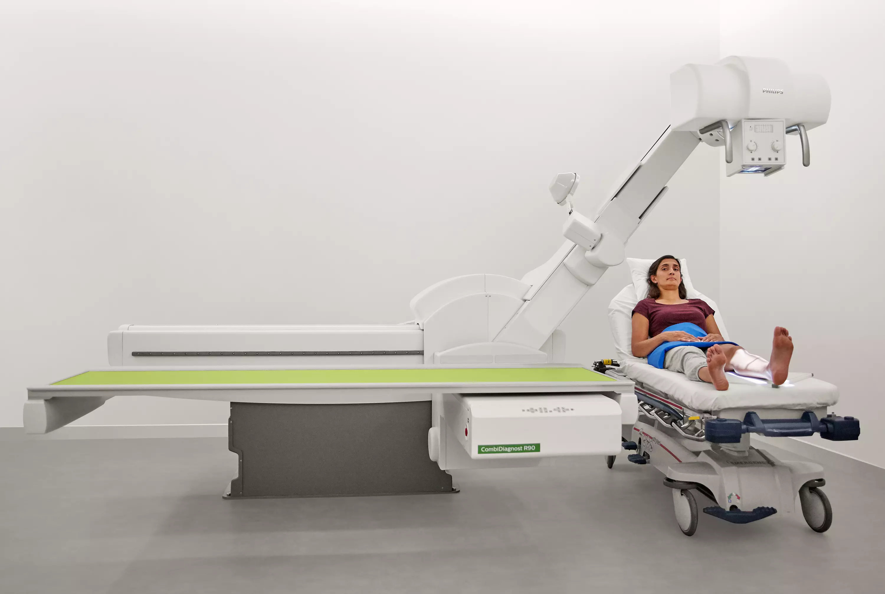 CombiDiagnost R90 объединяет в одной системе стандартную цифровую рентгенографию и высококачественную флюороскопию. Телеуправляемый стол с поворотом 90/90 обеспечивает гибкую укладку, доступ к пациенту и скорость смены проекций, а динамический плоскопанельный детектор 43×43 см позволяет получать как непрерывные/импульсные флюорокадры, так и статические снимки без замены приемника. Пакет DoseWise оптимизирует спектр и импульсные режимы, удерживая дозовую нагрузку на безопасном уровне при сохранении высокой контрастной чувствительности.