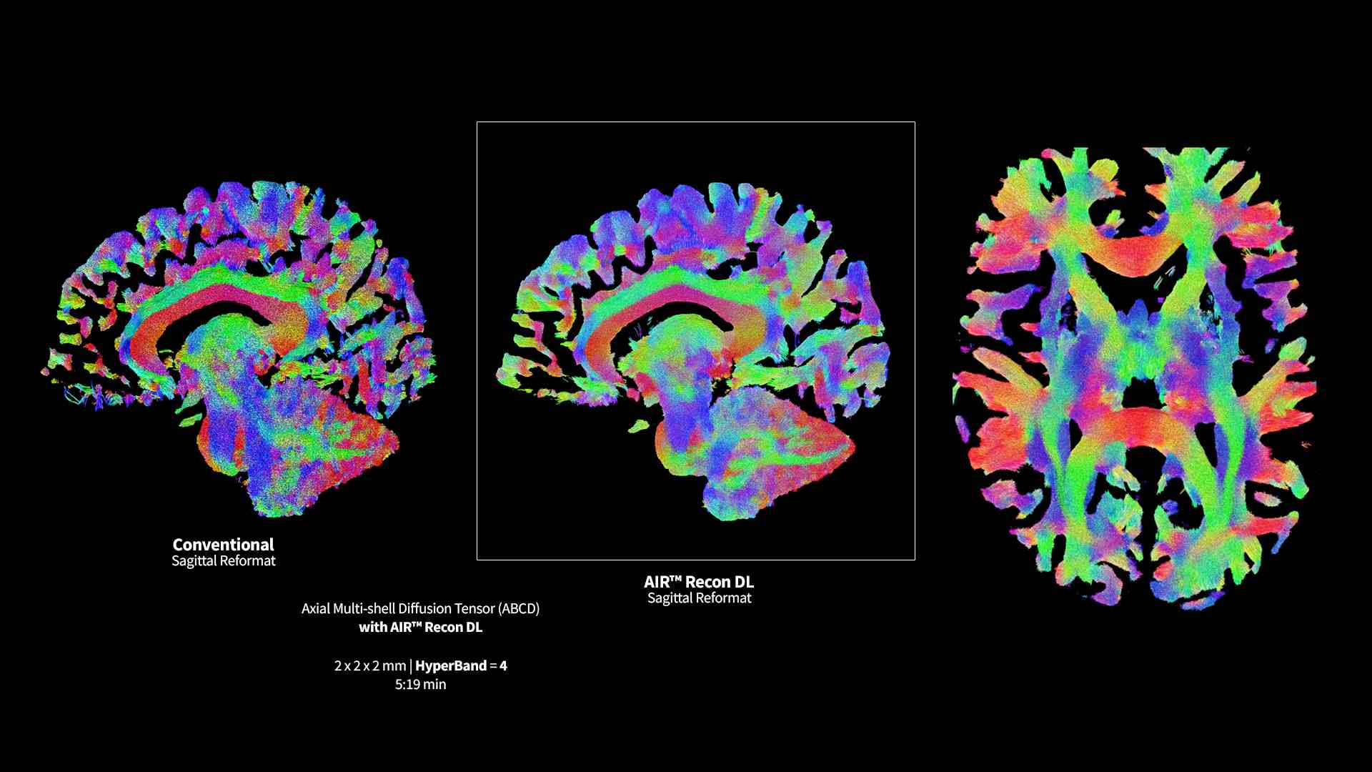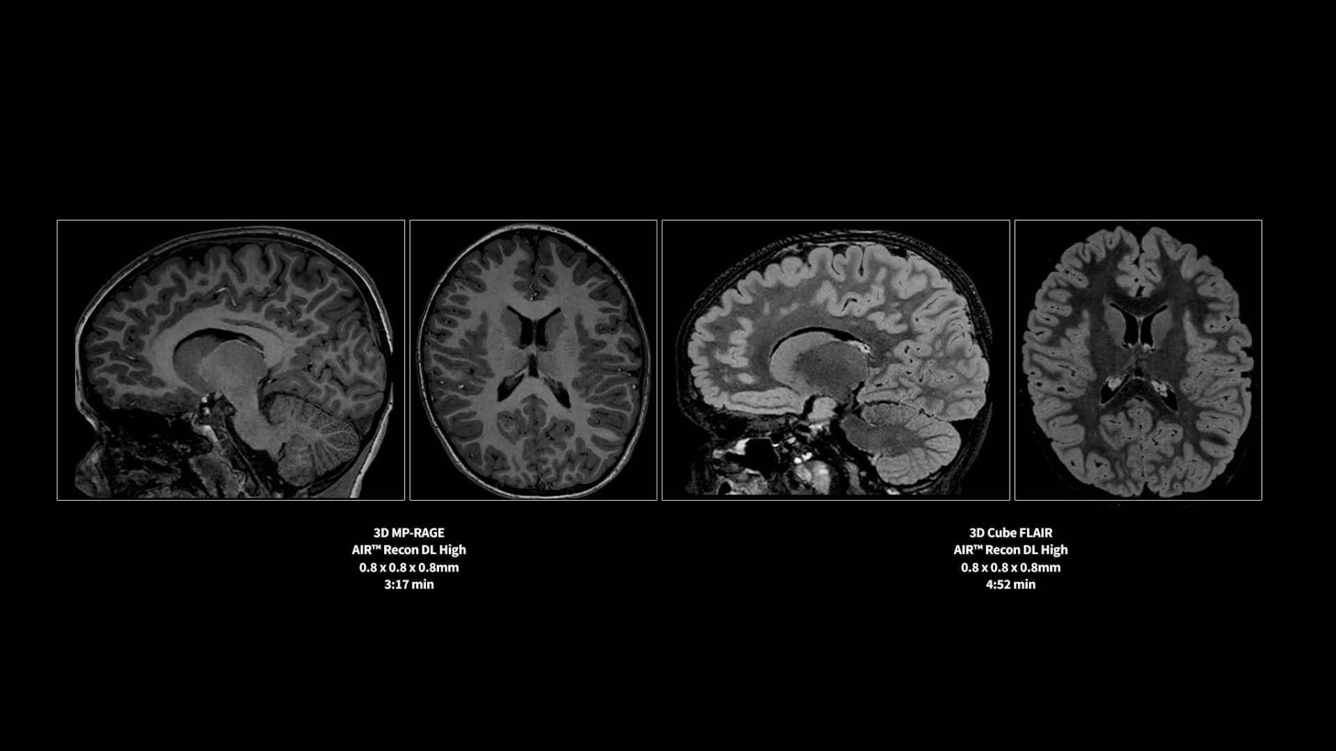 - Алгоритмы глубинного обучения AIR Recon DL для улучшения соотношения сигнал/шум и сокращения времени сканирования.