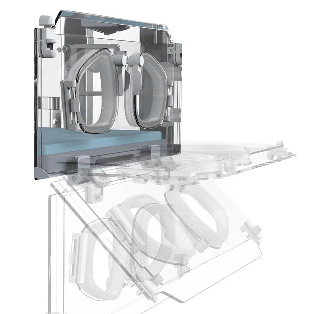 - Замкнутая система циркуляции воздуха с симметричными каналами подачи и отвода для поддержания стабильного микроклимата в кувезе.