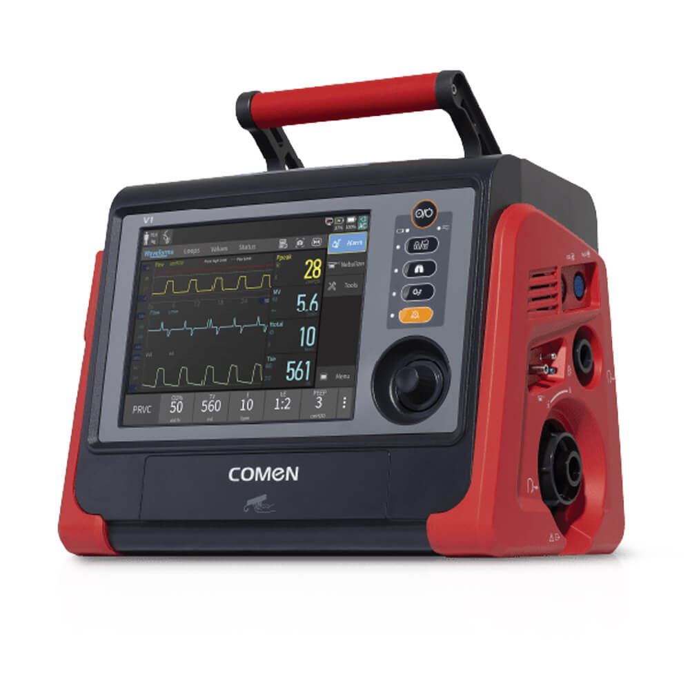 COMEN V1 формирует устойчивый «передвижной контур» поддержки дыхания: турбина обеспечивает требуемый расход и резерв по давлению, адаптивные триггеры уменьшают асинхронию, а алгоритмы компенсации утечек повышают эффективность NIV. Логика взаимодействия построена вокруг сенсорной панели с крупной индикацией и быстрыми пресетами. Отображаются кривые давления/потока/объёма и петли, доступна запись трендов — это облегчает клинические решения «на ходу». Конструкция предусматривает фиксацию на каталке/рейлинге, защиту от вибраций и продуманную эргономику газовых подключений. Такой набор свойств делает систему удобной для перевода пациента между ОИТАР, операционным блоком, диагностическими кабинетами и обратно, не нарушая протокола дыхательной поддержки.