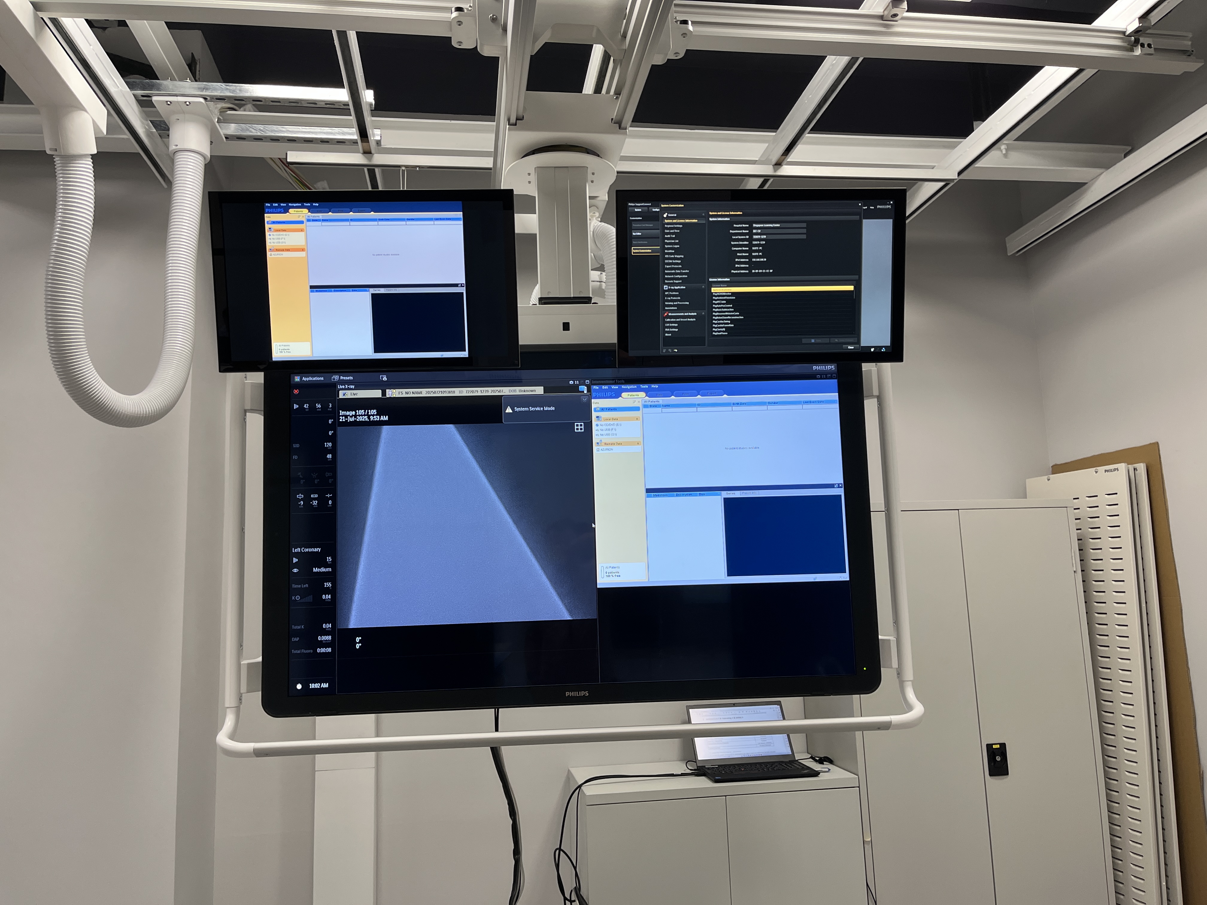 В рамках технического обслуживания ангиографического оборудования Philips и GE мы проводим диагностику механики С-дуги, проверяем плавность хода, точность позиционирования и работу тормозных систем, оцениваем состояние датчиков положения и кабельных цепей. Работает блок проверки работы С-дуги ангиографа, тестируются режимы флюороскопии, цифровой субтракционной ангиографии (DSA), кинозаписи, а также качество изображения и отклик детекторной панели. Особое внимание уделяется системам безопасности, аварийным остановам и межблочным блокировкам.